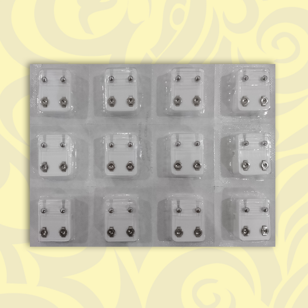 An economical solution for our customers with the Caflon Original style range. Our surgical-grade earrings are available in convenient packs of 12 pairs, offering high-quality options in stainless steel, 24ct gold plating, and titanium. Each pack is securely blister-sealed to maintain the sterility of the piercing studs.