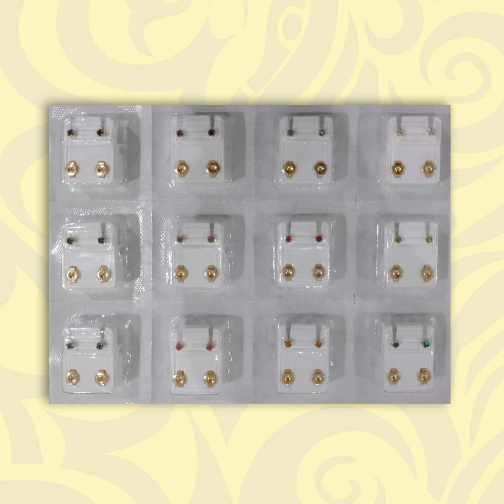 An economical solution for our customers with the Caflon Original style range. Our surgical-grade earrings are available in convenient packs of 12 pairs, offering high-quality options in stainless steel, 24ct gold plating, and titanium. Each pack is securely blister-sealed to maintain the sterility of the piercing studs.